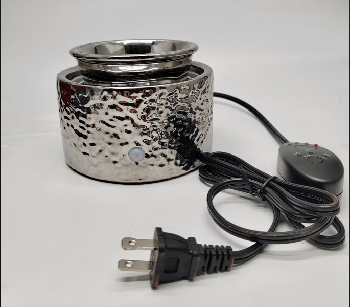 8.2Metallic Silver Hammered Ceramic Warmer